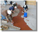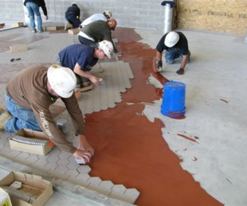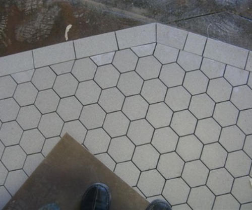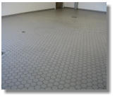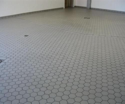 The VTF System is a food plant floor system that incorporates a 3/4" ceramic tile with a high performance novolac epoxy grout and an impervious epoxy bedjoint. These fully vitrified tile are extremely dense and are resistant to wear,impact and harsh chemicals. VTF tile have a consistent dimensional precision and flatness which results in an extremely uniform floor. They come in a variety of colors and are rectangular and hexagonal shape. Installation of these floors is relatively fast compared to a standard quarry tile or paver floor. The installation is not performed using the standard tile hand grouting technique. VTF Tile are laid in a nominal 1/8" epoxy bed joint and by design are tightly butted together leaving an approximate 1/8" opening for the side joint. After the tile are set, a fine, colored aggregate is swept into the open joints which are then flooded with low viscosity novolac epoxy resin and squeegeed. This is followed by another powder broadcast and power grouting to pack and densify the joints. The surface is then cleaned and buffed.VTF Tile can also be used with standard tile setter techniques with typical 1/4" grout spacing using Rezklad HP Grout or other resin based grouts depending on operating service conditions.