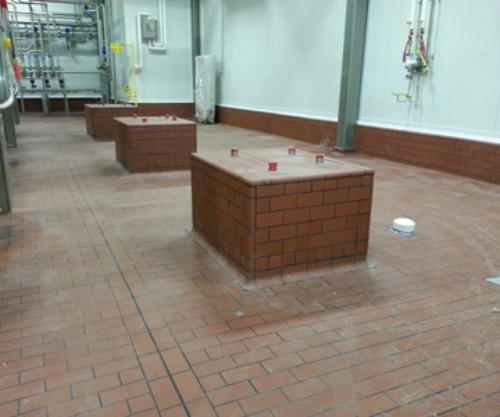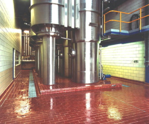 Tile & Brick Food Plant FloorsPasta, cheese. milk juice, beer yogurt, ice cream - Food Plants. Many of the who's who companies in the food and beverage industry choose red shale "dairy" paver or vitrified tile floors, especially in wet process service areas. They have found that by placing a VTF System or Furnane System floor they have reduced maintenance and increased longevity of floors in operating areas. Nothing holds up better to the abuse, thermal cycling, organic acids and clean in place (CIP) cleaning solutions than these floor systems. They typically last 40 years or more virtually maintenance free. Millions of square feet and 65 years of history are testimony.