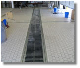 The VTF System is a food plant floor system that incorporates a 3/4" ceramic tile with a high performance novolac epoxy grout and an impervious epoxy bedjoint. These fully vitrified tile are extremely dense and are resistant to wear,impact and harsh chemicals. VTF tile have a consistent dimensional precision and flatness which results in an extremely uniform floor. They come in a variety of colors and are rectangular and hexagonal shape. Installation of these floors is relatively fast compared to a standard quarry tile or paver floor. The installation is not performed using the standard tile hand grouting technique. VTF Tile are laid in a nominal 1/8" epoxy bed joint and by design are tightly butted together leaving an approximate 1/8" opening for the side joint. After the tile are set, a fine, colored aggregate is swept into the open joints which are then flooded with low viscosity novolac epoxy resin and squeegeed. This is followed by another powder broadcast and power grouting to pack and densify the joints. The surface is then cleaned and buffed.VTF Tile can also be used with standard tile setter techniques with typical 1/4" grout spacing using Rezklad HP Grout or other resin based grouts depending on operating service conditions.